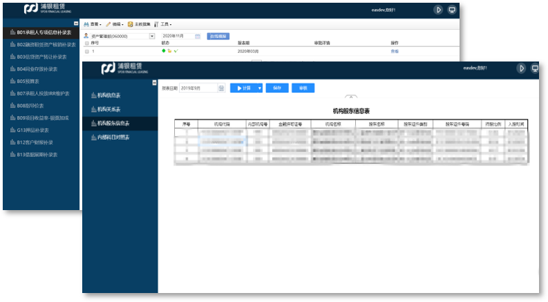 數(shù)據(jù)補錄:包含承租人專項信息、融資租賃資產核銷、信貸資產轉讓、同業(yè)存放、預算表等報表補錄,將缺失數(shù)據(jù)按機構、時間維度進行人工填報。