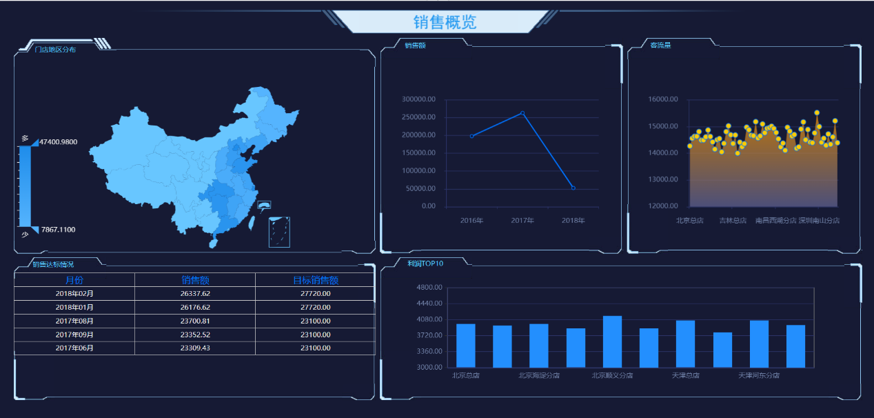 ABI一站式數據分析平臺支持動態炫酷的酷屏分析,獨特的3D全景視角,自由快捷制作各類交互式常規屏和大屏報表,真正達到設計能走多遠,數據可視化展現就能達到多遠的境界。