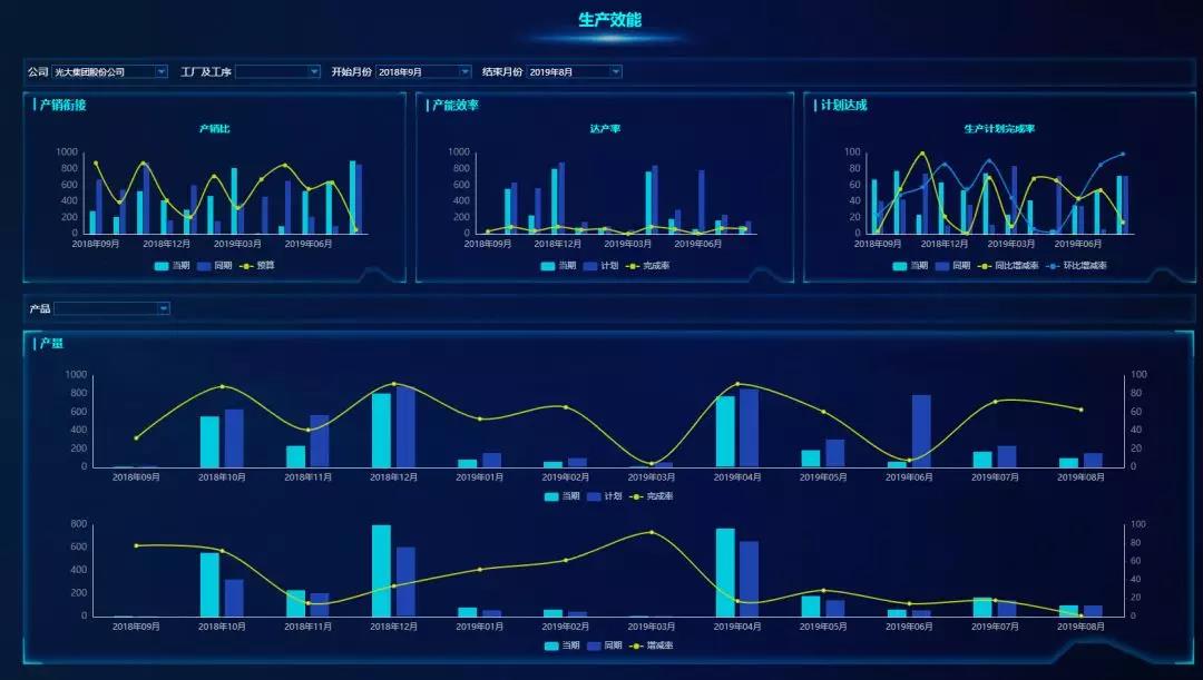 下圖是用億信ABI搭建的生產(chǎn)數(shù)據(jù)分析平臺,都是用于實際生產(chǎn)的可視化報表。
